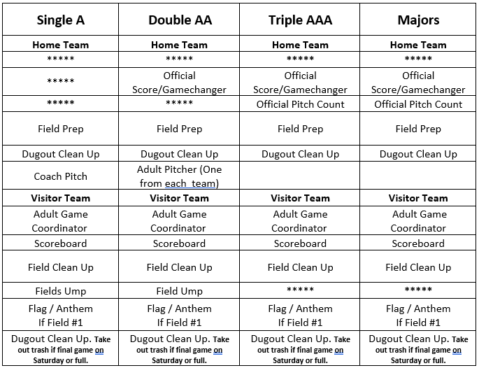 BASEBALL VOLUNTEER DUTIES